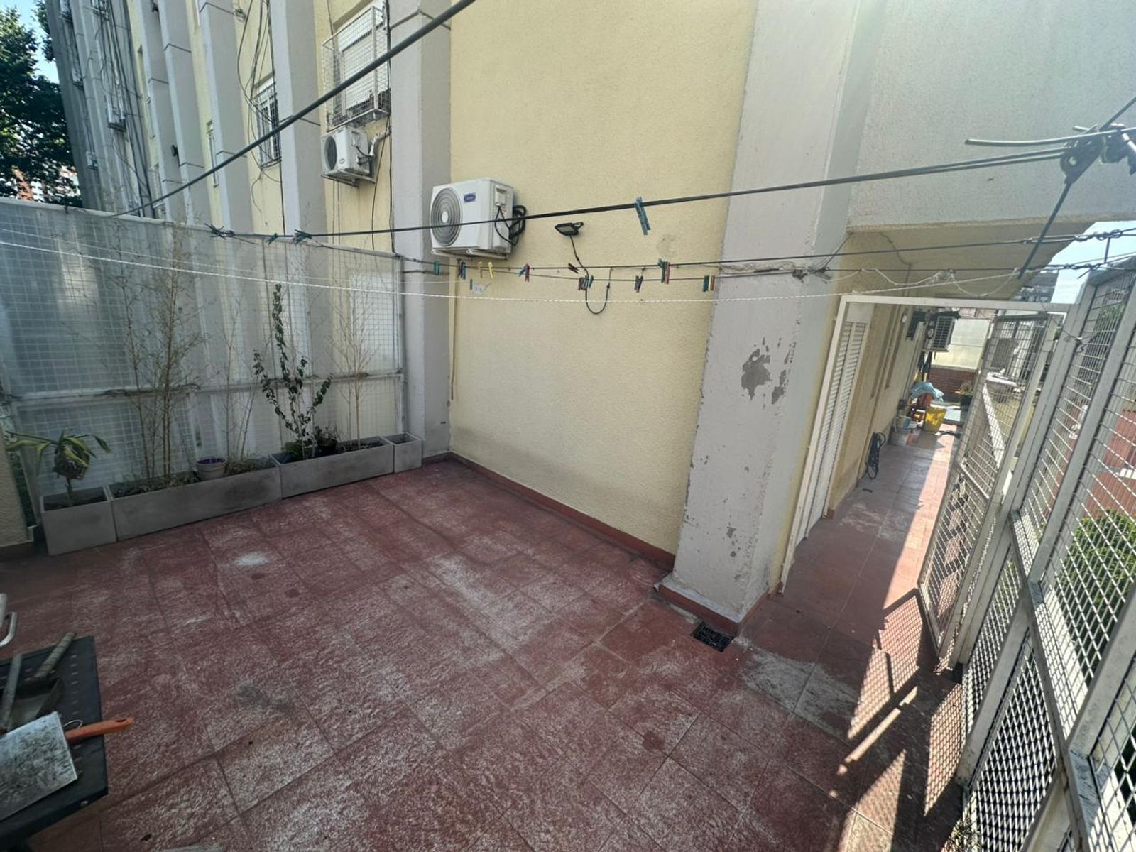 El departamento cuenta con living-comedor, cocina, baño completo y dos dormitorios. Dispone de un balcón corrido de aproximadamente 10 metros con vista a un patio común interno. Cuenta además con un cerramiento ideal como comedor diario o quincho y un patio descubierto con posibilidad de uso como terraza.